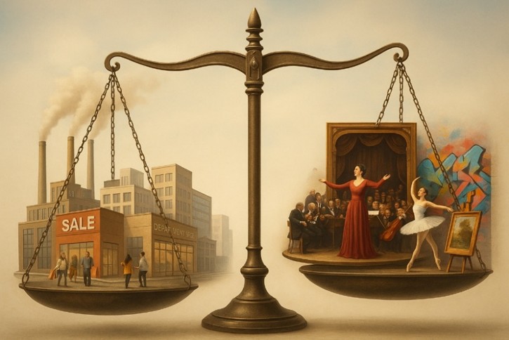 Die Corona-Krise hat uns gezeigt, wie die Verhältnisse zwischen Kultur und Wirtschaft tatsächlich sind: Kultur ist keine „brotlose Kunst“, sondern eine mächtige Schlüsselwirtschaft, ohne die andere Wirtschaftsbereiche kaum überleben könnten. Sie verdient nicht nur Bettel-, Sponsoren- oder staatliche Fördergelder, sondern massive Investitionen, damit andere Wirtschaftsbereiche überleben können.